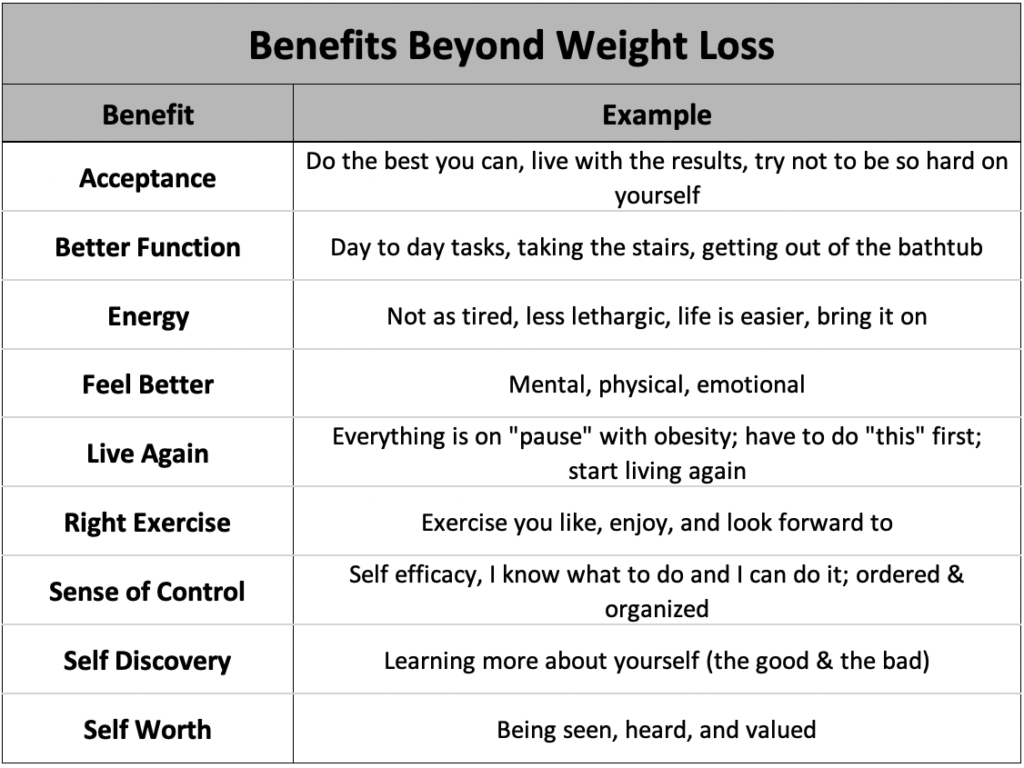Weight loss programs and diets focus on the final outcome (pounds lost) but spend much less time focusing on the process (journey) of getting there. Focusing on weight loss (final outcome) makes sense.